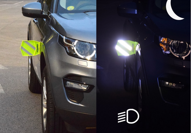 SIDEGUARD, kapıyı kapattığınızda yol kenarındaki ön kapı menteşesi boşluğuna kolayca yerleştirilen, oldukça görünür ve yansıtıcı bir uyarı cihazıdır.